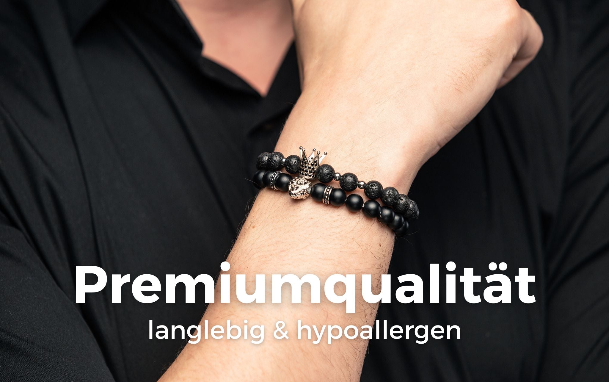 Weißgoldkrone mit Vulkansteinen Armband: Ein originelles und raffiniertes Accessoire für Männer