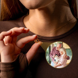 Jede Halskette trägt eine intime Note mit Ihrem gewählten Bild im Inneren. Schauen Sie hinein oder nutzen Sie die Kamera Ihres Smartphones, um das verborgene Bild zu entdecken.