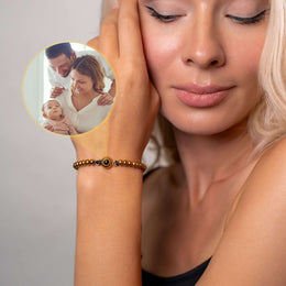 Jedes Armband trägt eine intime Note mit Ihrem gewählten Bild im Inneren. Schauen Sie hinein oder nutzen Sie die Kamera Ihres Smartphones, um das verborgene Bild zu entdecken.